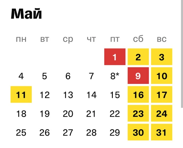 В этом году выделили всего шесть выходных на весенние праздники. Отдыхать будем с 1 по 3 мая и с 9 по 11 мая.