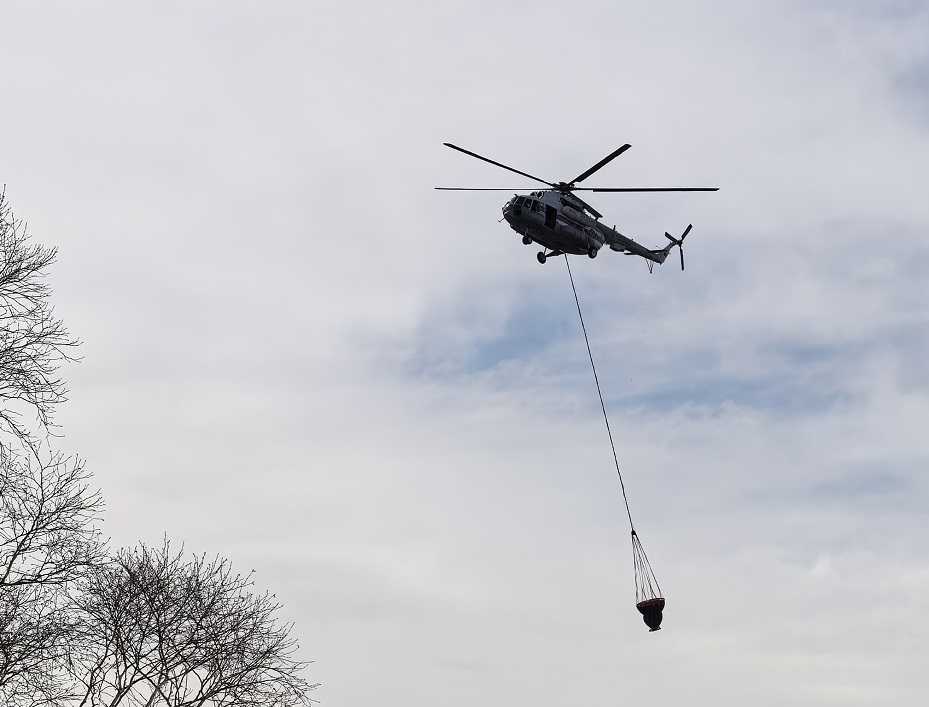 Вертолёт Ми-8 Хабаровского авиационного центра МЧС России оборудован водосливным устройством, вмещающим до 3,5 тонн воды.